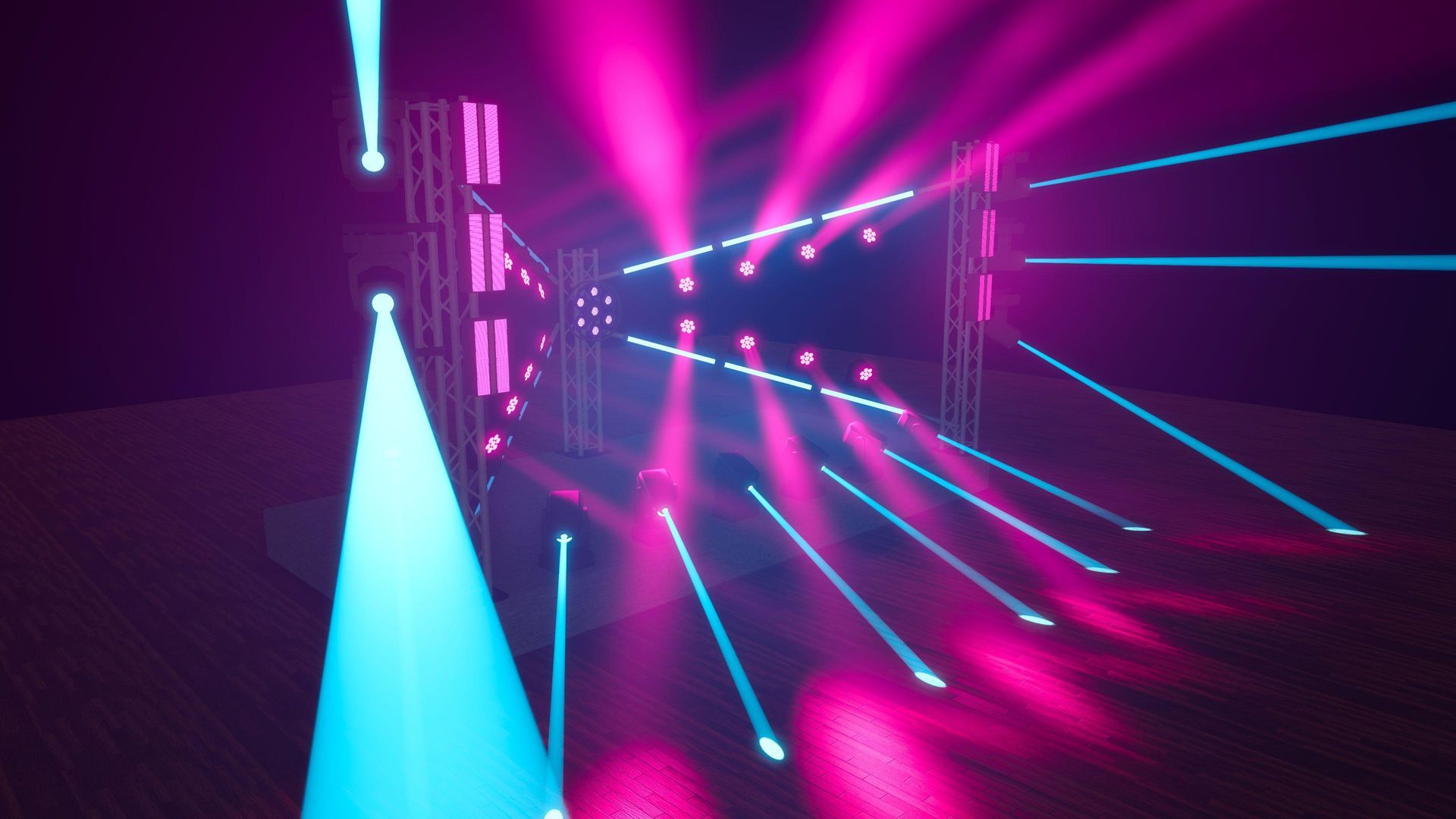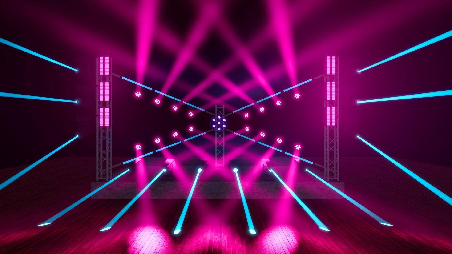 עיצוב ייחודי שנבנה כמו קרן אור מתפרצת – פריסה מושלמת של פנסי זום לד וסטריפים חכמים, היוצרים יחד מבנה מאוורר, סימטרי ומהפנט שמרגיש כמו מנהרת אור צבעונית שנפתחת ישירות אל תוך הקהל.